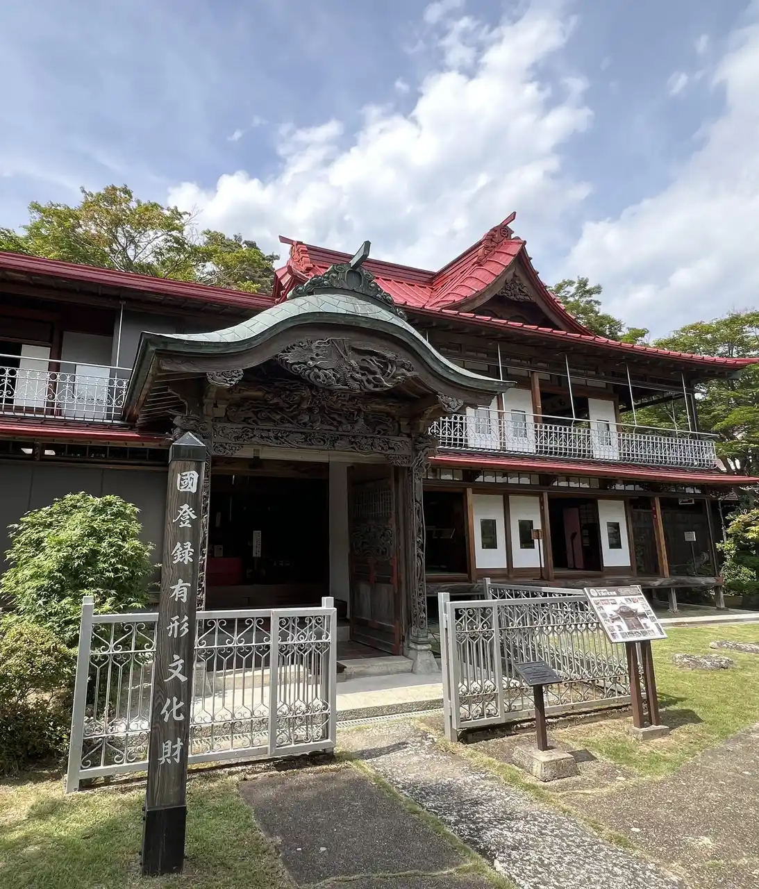 園内に佇む「蛇の鼻御殿」は、築120年を超える国登録有形文化財で、完成までに約8年の歳月をかけて建てられました。館内には当時の貴重な材木がふんだんに使用されており、現在では同様の建築は困難とされる、歴史的価値の高い建造物です。御殿内には、伊藤博文をはじめとした歴史的人物の書や襖絵、彫刻などが展示されています。庭園の景観とともに、当時の趣ある空間を感じることができます。 |