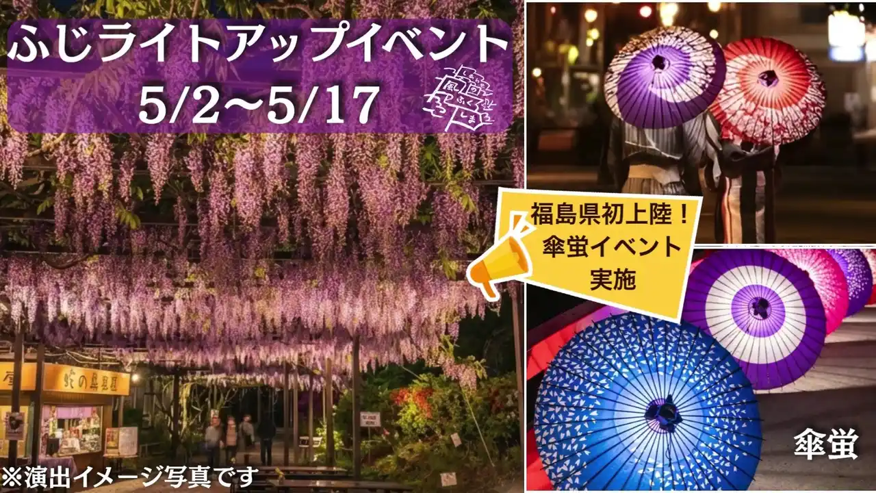 花と歴史の郷 蛇の鼻 [株式会社伊東商事(本社:福島県郡山市 代表取締役:伊東孝弥)]は、「2026ふじ祭り ふくしまDC特別版」を4/29~5/17に開催します。 |