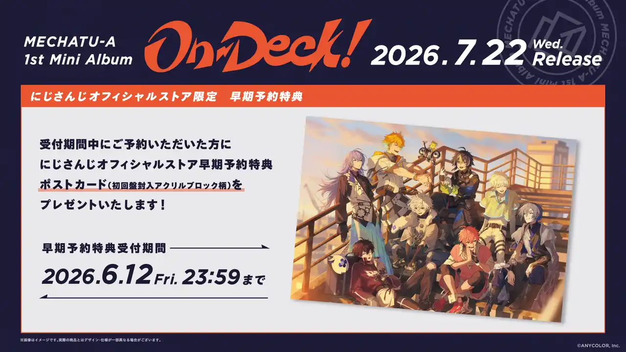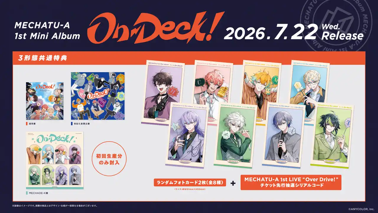 【ANYCOLOR株式会社】 MECHATU-A 1st Mini Album「On-Deck!」2026年7月22日(水)発売!さらに、2026年10月にはKアリーナ横浜でのライブ開催も!