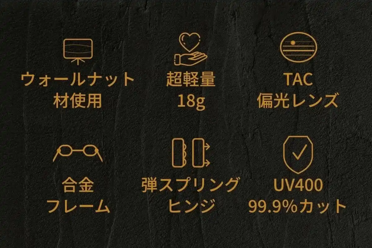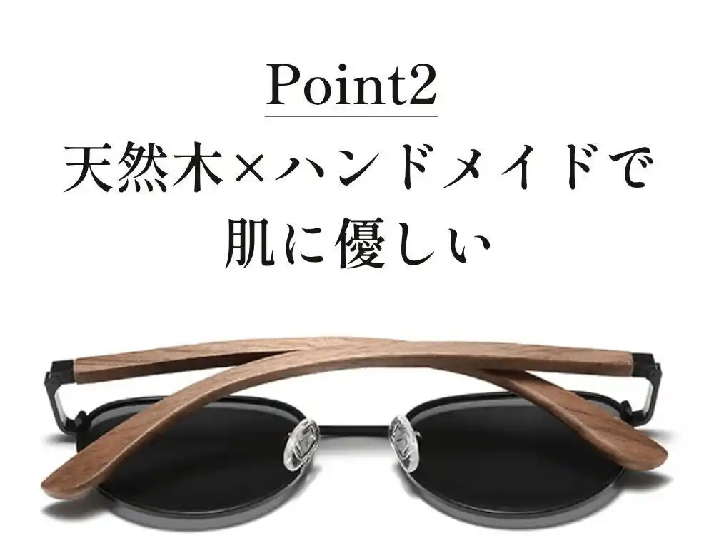 天然木の美しい木目と職人の手作業が織りなすデザインは、ファッションアイテムとしても極めて高い完成度を誇ります。快適な装着感、クリアな視界、そして所有欲を満たす質感。これらすべてが、一日中外したくなくなるような自然体の使い心地を約束します。 |