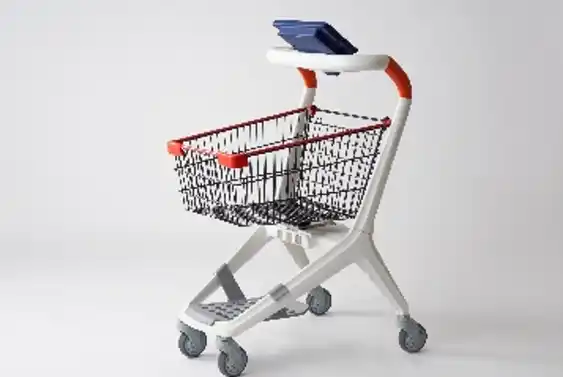 レジカートとはトライアルグループが開発した、タブレットとバーコードリーダーを搭載したセルフレジ機能付きの買い物カートです。トライアル専用プリペイドカードをスキャンすることでカートが使用できるようになり、お客様は商品のバーコードをスキャンしながらお買い物を進めることができます。専用ゲートを通過する際にプリペイドカードのチャージ額からお買い上げ額が引かれ、レジ待ちをすることなくキャッシュレス決済が完了します。 |
