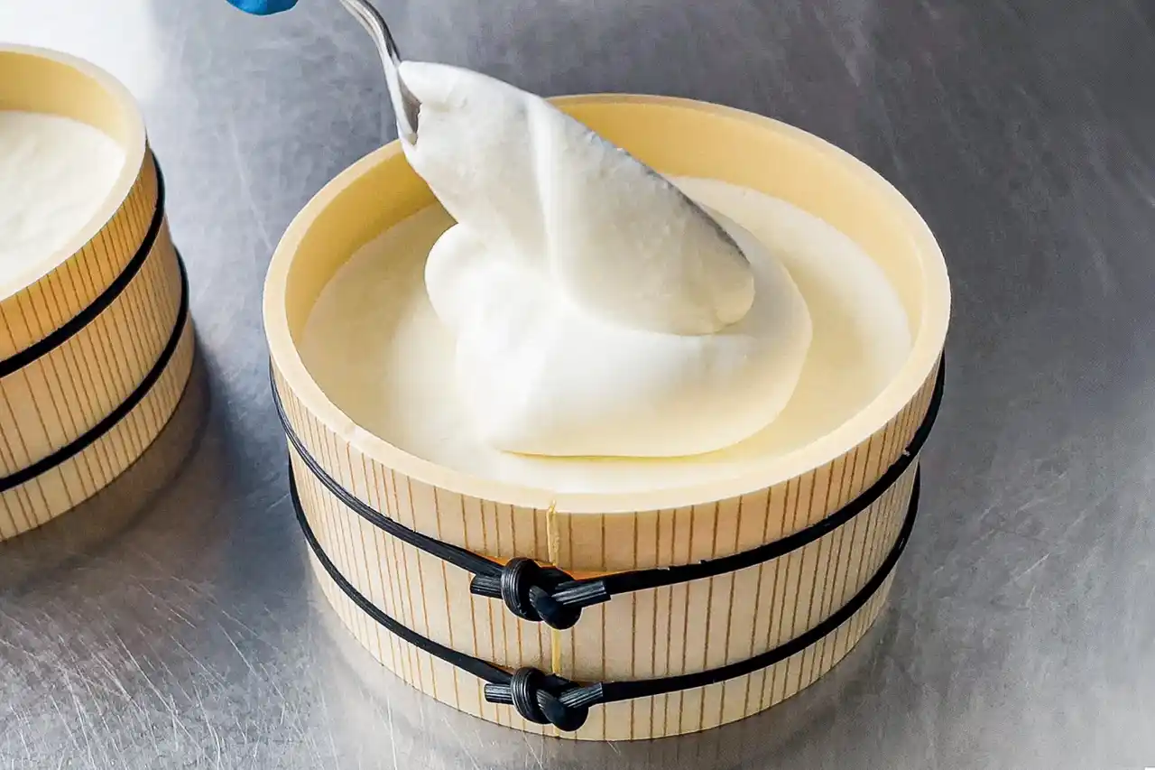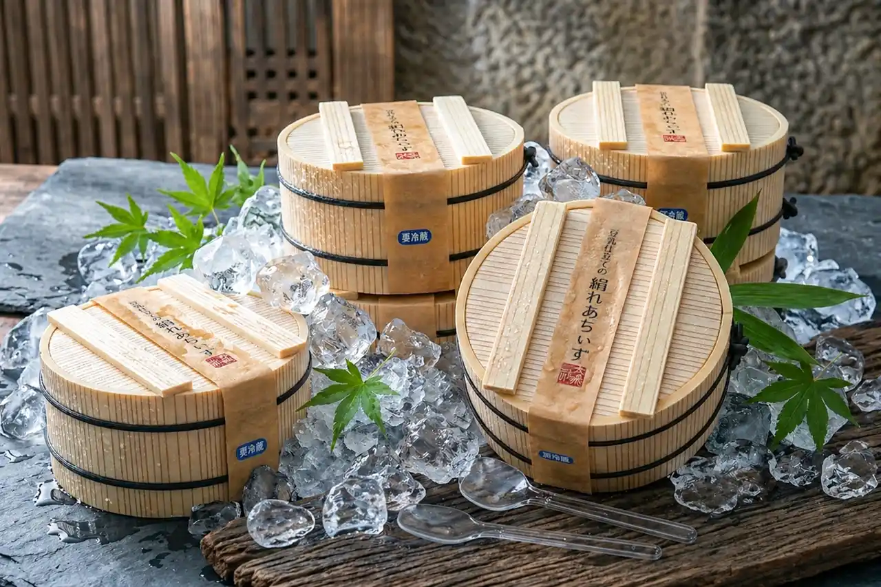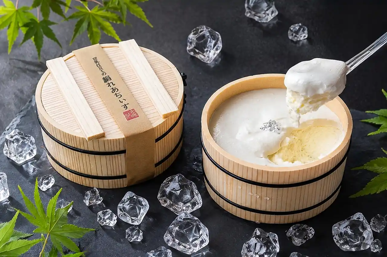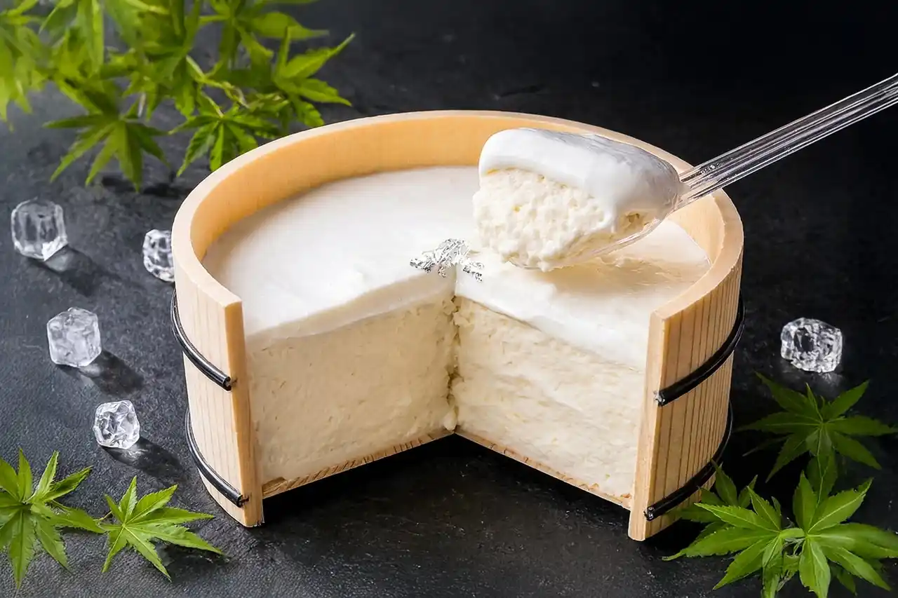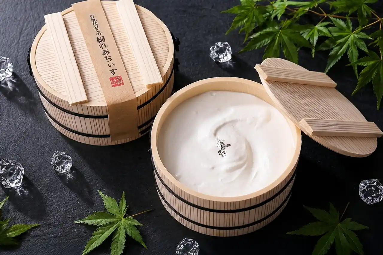 豆乳を使ったスイーツは、大豆特有のにおいが気になりがちですが、この「絹れあちぃず」にはそれがまったくありません。そのヒミツは、“加熱しすぎない”という繊細な温度管理。加熱しすぎると、大豆に含まれる脂質が分解され、青臭い成分が生まれてしまいます。それを防ぐことで、大豆の風味を感じさせないほど澄んだ味わいに。甘さは控えめに、気品あるコクだけを残しました。 |