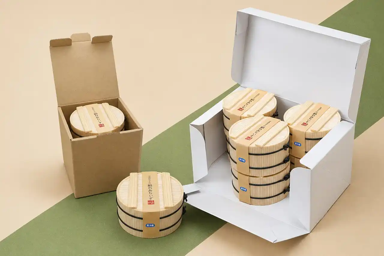 ■ 洋のスイーツでは類を見ない、贅沢な「曲げわっぱ」仕立て。 |