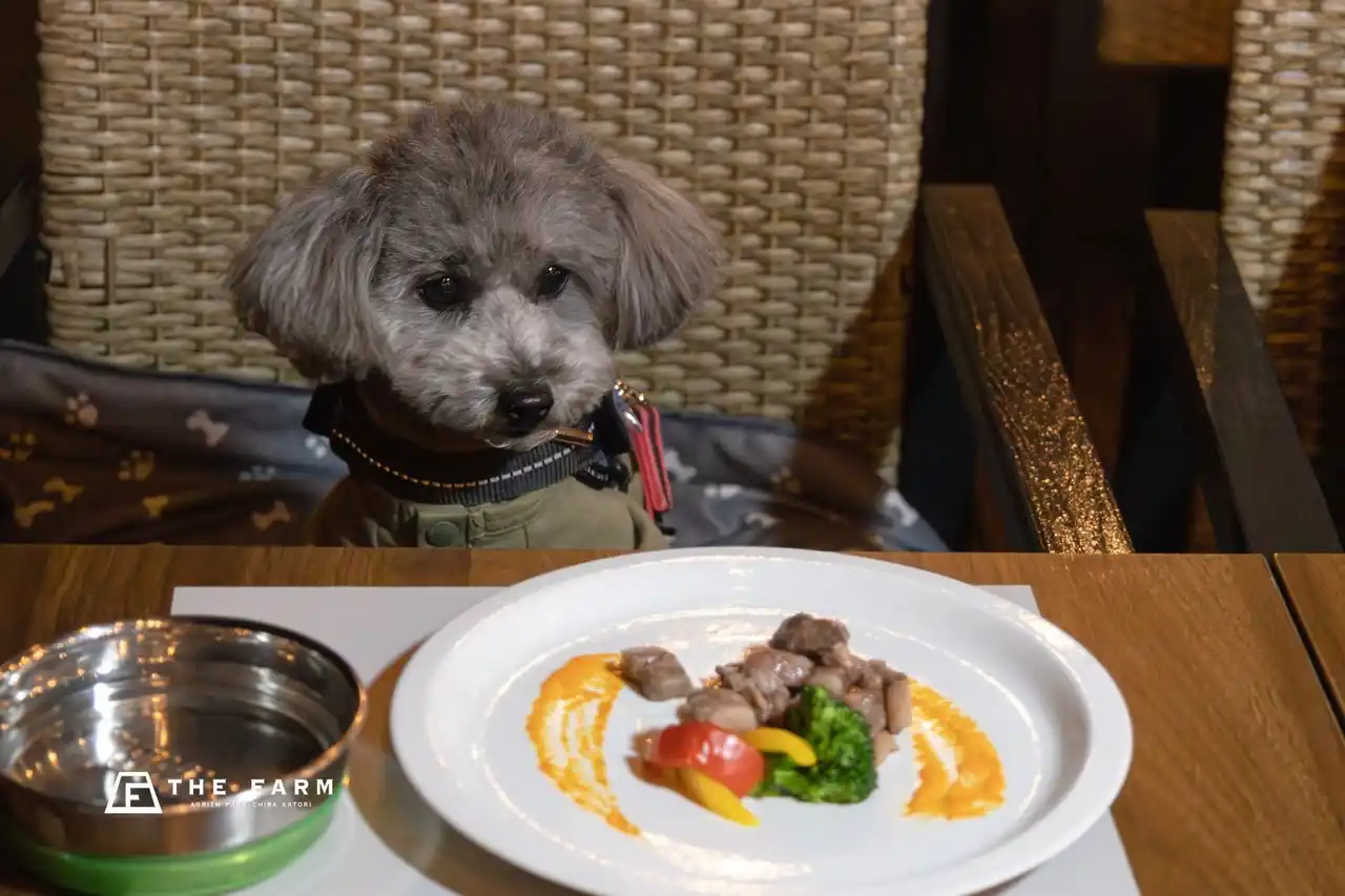 株式会社ザファーム(本社:千葉県香取市、代表取締役:武田 泰明 以下、ザファーム)は、農園リゾートTHE FARM(以下、THE FARM)が運営するTHE FARM カフェにて、愛犬向けのディナーコース「Doggy’s Dinner Course」をご用意いたしました。2種のテリーヌ、野菜のスープ、かずさ和牛のリブフィンガー、スイーツと季節の果物で構成したコース仕立てのメニューで、価格は4,400円(税込)。5日前までの完全予約制で、小型犬から大型犬までご利用いただけます。ご案内は冷暖房完備のテラス席で、提供日は金・土・日・祝日限定。なお、7月~9月および1月~2月は対象外期間としております。 |