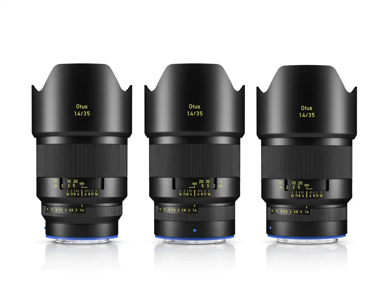 写真左から Otus ML 1.4/35:ソニー Eマウント、ニコン Zマウント、 キヤノン RFマウント |
