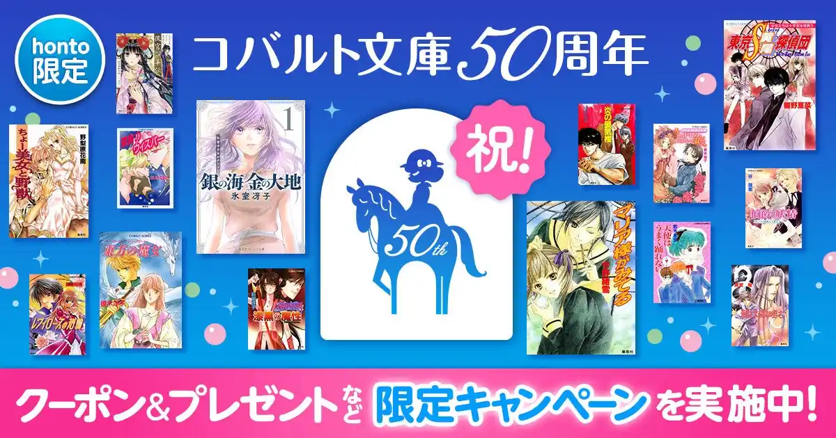 ハイブリッド型総合書店「honto」(運営:大日本印刷株式会社(DNP)、株式会社丸善ジュンク堂書店、株式会社文教堂、株式会社トゥ・ディファクト)では、集英社コバルト文庫50周年記念とコラボして、コバルト文庫関連作品50%OFFクーポン、「まんが家マリナ」1巻大容量試し読み無料商品の配信、レジェンド作家寄せ書きミニポスタープレゼントキャンペーンを実施します。