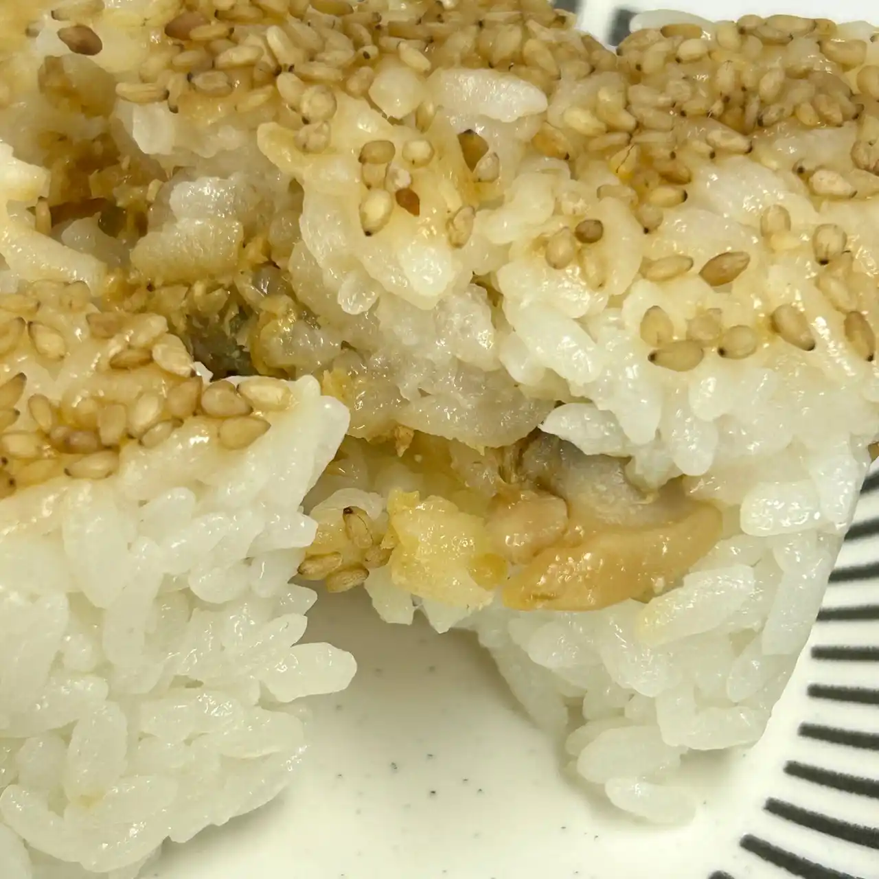 福島県会津産コシヒカリを使用したごはんに、「うまくて生姜ねぇ!!」とあさりの旨みが広がる深川煮を合わせ、表面の胡麻の香ばしさがアクセントとなった一品です。 |