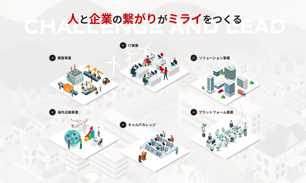 これまで長きに渡り培ってきた、IT分野のノウハウを活かし、挑戦的な企業活動で急成長を続けるキャル。IT業界で幅広い対応力を発揮できる会社を目指します。 |