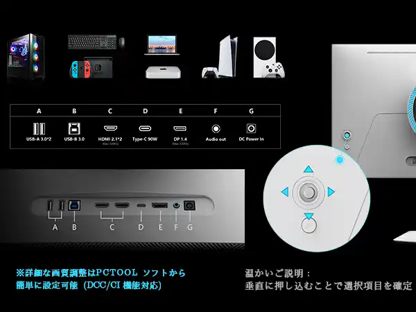 USB Type-C(最大90W給電)にも対応しており、 ノートPCとの接続もシンプルに行えます。 |