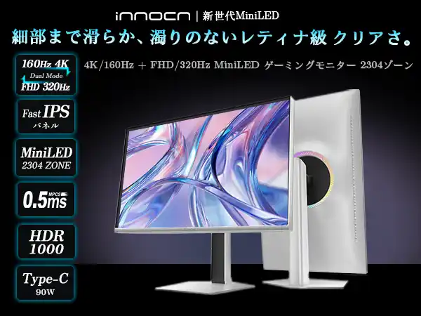 ハイエンドディスプレイブランド「INNOCN(イノセン)」は、 27インチQD-Mini LEDモニター「GA27V1M MAX」を発表しました。 |