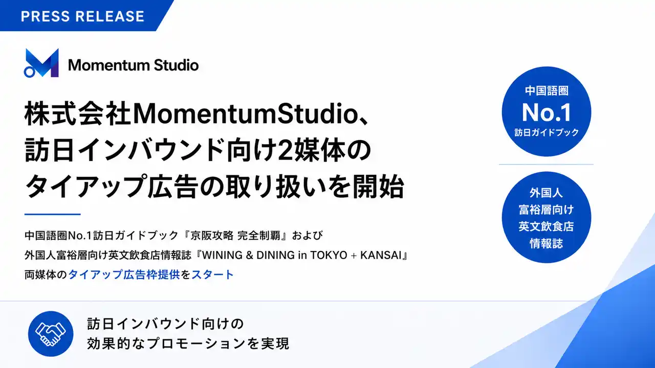 株式会社MomentumStudio(本社:東京都港区、代表取締役:小柳孝一)は、訪日外国人(インバウンド)および日本在住外国人富裕層をターゲットとした2媒体のタイアップ広告の取り扱いを開始いたします。 |