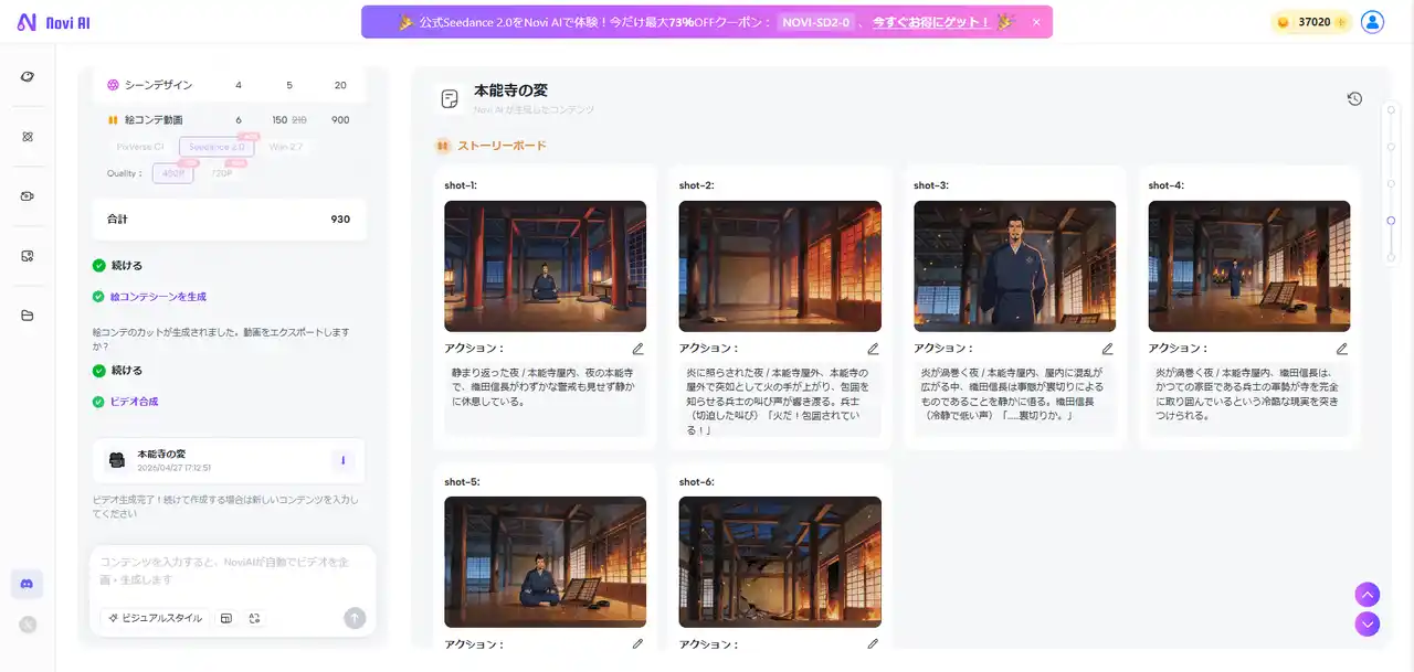 | ステップ4. キャラクターおよびシーンの確認後、各シーンに基づいたショット動画が自動生成されます。 | ||||||||||||||||||