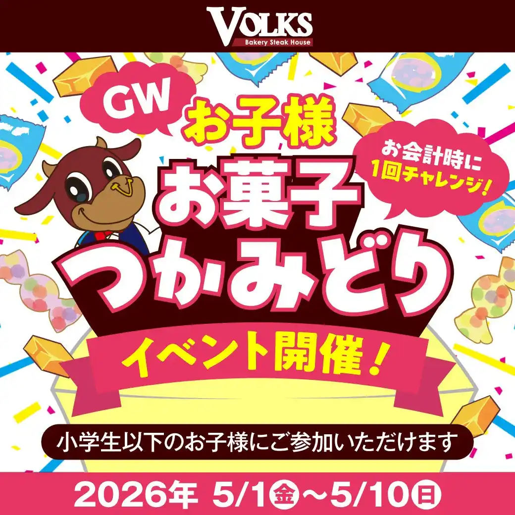 『ステーキハウス フォルクス』創業時の人気ステーキが今年もGWに限定復活!こどもの日のお菓子つかみ取り企画も!