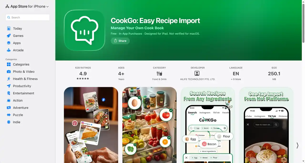 CookGo アプリは、以下のようなスマートな料理管理機能を提供しています。 |