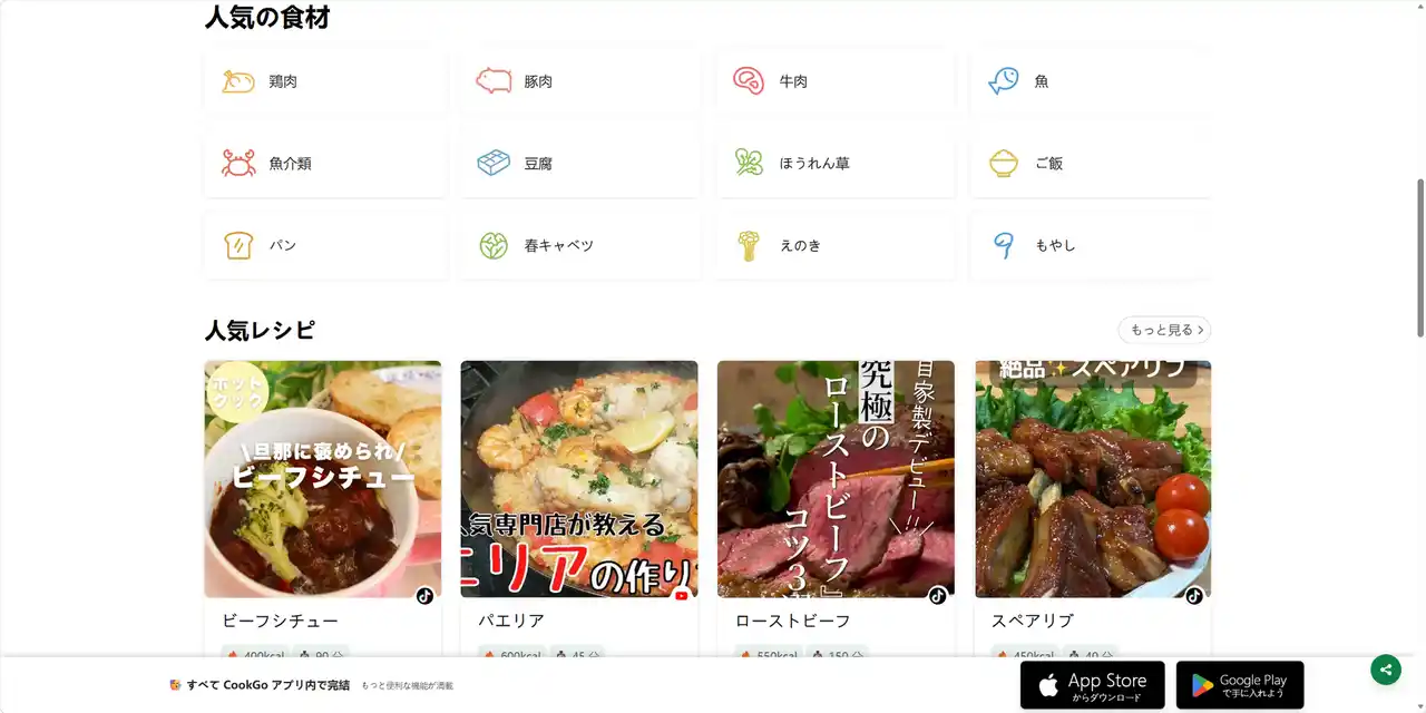 また、アプリ版では保存したレシピを簡単に整理・調理できる機能を提供しています。 サイトとアプリの両方で、レシピ探しから調理完了までをスムーズにサポートします。 |