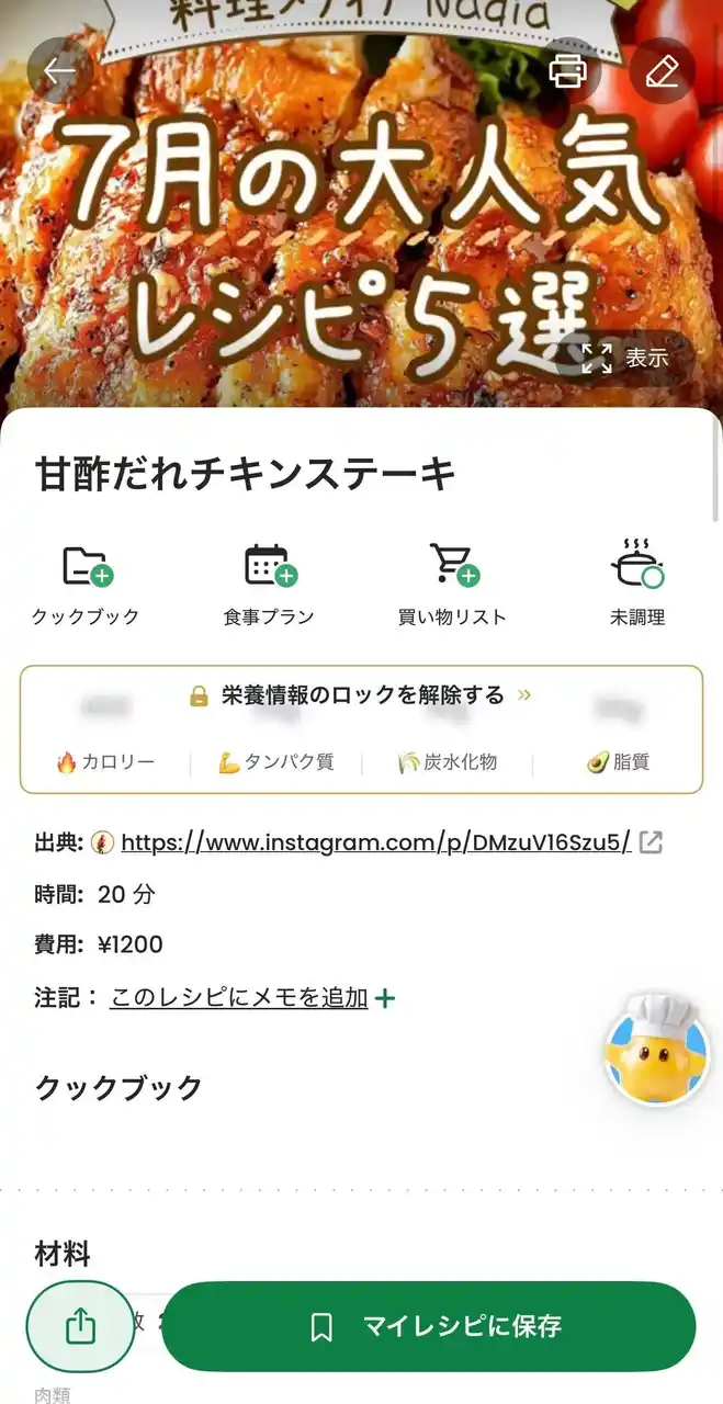 サイトで見つけたレシピも、この機能を使ってアプリに取り込むことが可能です。 |