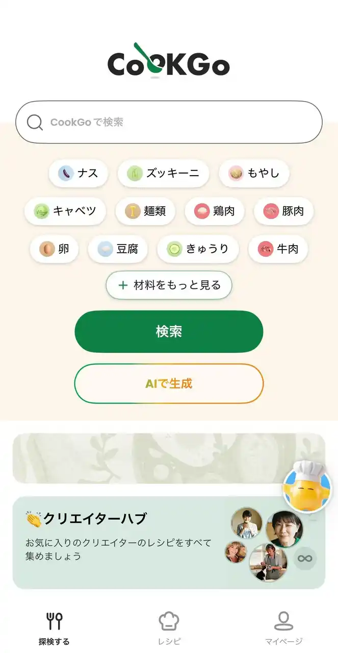 「作りたいレシピが見つからない」「情報がバラバラでわかりにくい」「保存したまま作っていない」といった声を受け、CookGo では、見やすく、探しやすいレシピサイトを目指して本サイトを開設しました。 |