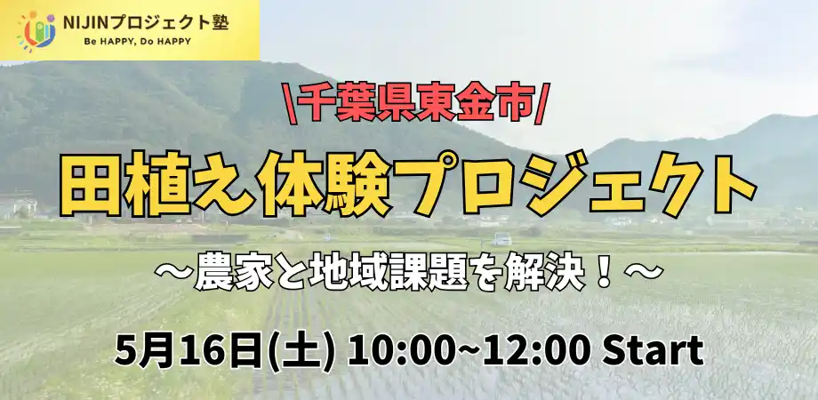 NIJINアカデミープロジェクト(運営:株式会社NIJIN/所在地:東京都江東区/代表:星野達郎)は、小学生を対象に、田植え体験と地域課題探究を組み合わせたプロジェクト「田んぼを守れ!田植え体験×地域課題探究プロジェクト」を2025年5月15日より全4回にわたり東金市内にて開催します。 |