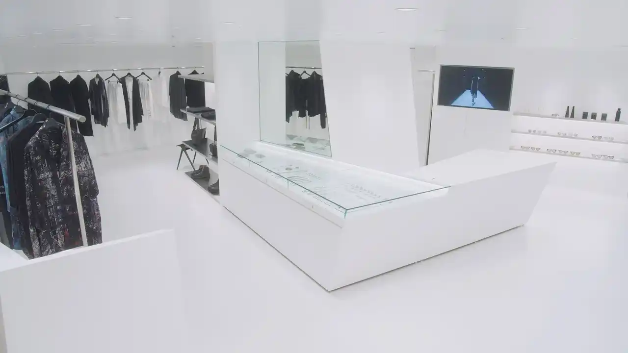 | 店内は、エントランス側とカウンターを備えた奥側の二つのエリアで構成されており、ヨウジヤマモトのクリエイションを立体的に体感いただける空間となっています。 | |||