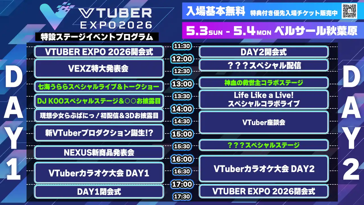 VTUBER EXPO 2026 ステージタイムテーブルが更新!! |