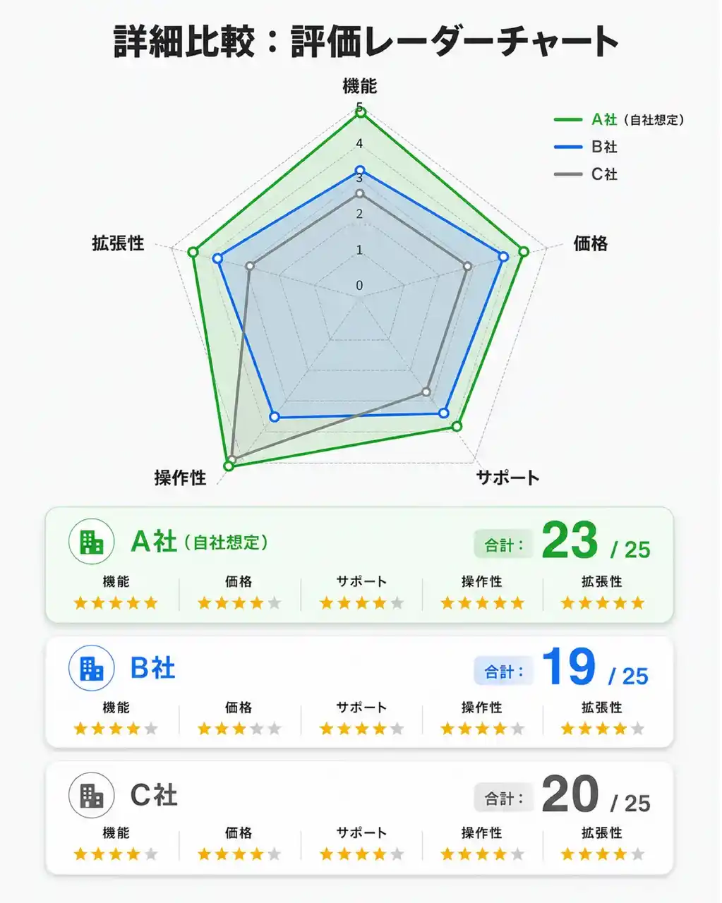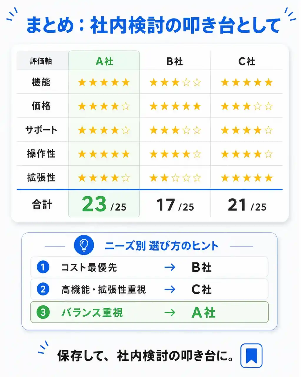 次に、商品比較コンテンツとしての活用です。「サブスク vs 買い切り」「自社 vs 他社」など、意思決定で迷うポイントを表組みで整理した投稿は、Instagram・X・LinkedInで保存率が高い定番フォーマットです。NoLangの図解テンプレートを使えば、比較表・チェックリスト・スコアカードといった視覚的に整理されたデザインを、テキストを入力するだけで4:5スライドとして仕上げられます。 |