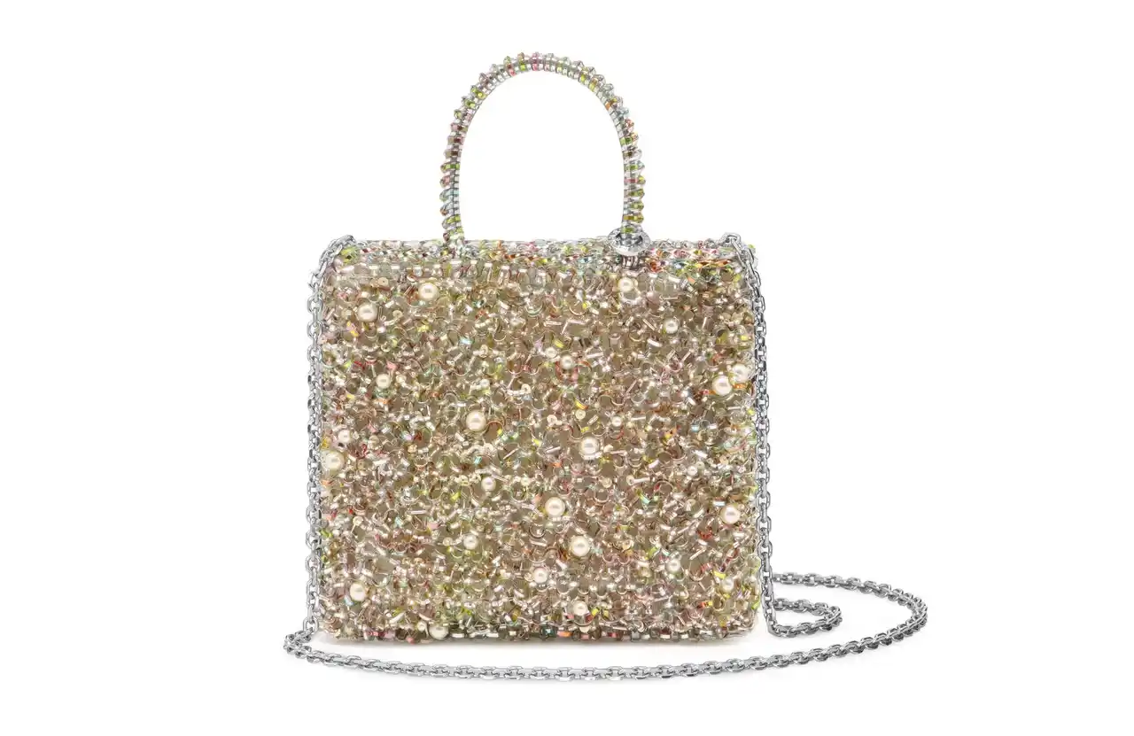 スパンコールにビーズ、そしてワイヤーコードと、異なる輝きが一つで楽しめます。 |