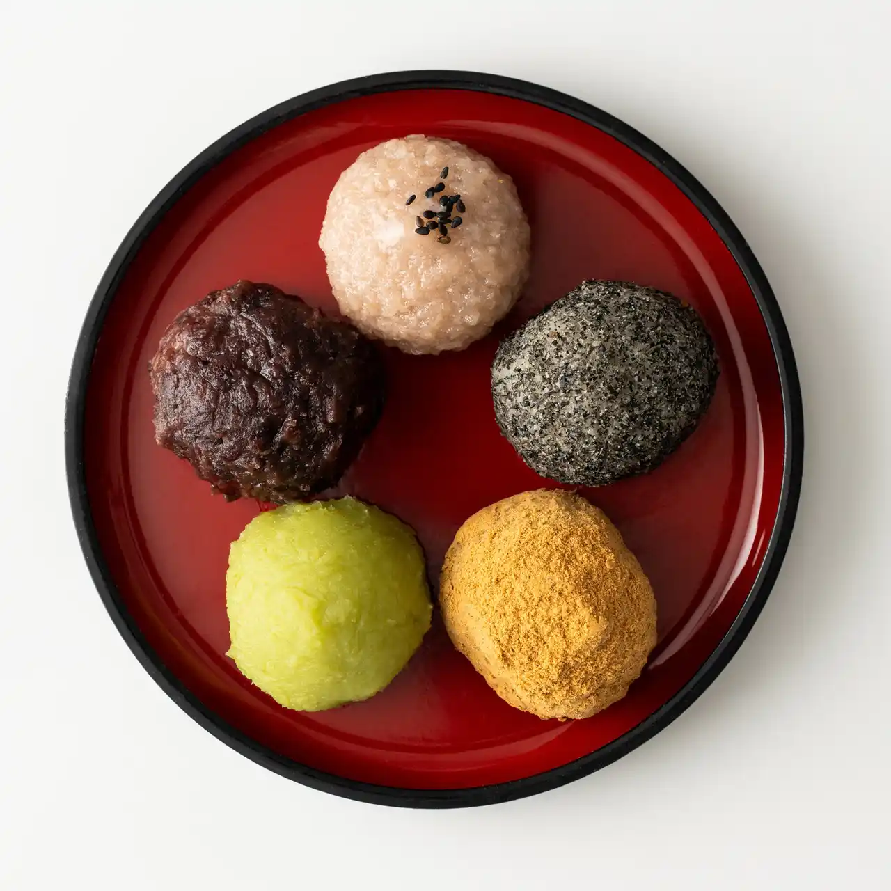 内容は、粒・赤飯・すりごま・きな粉・ずんだの5種です。 |