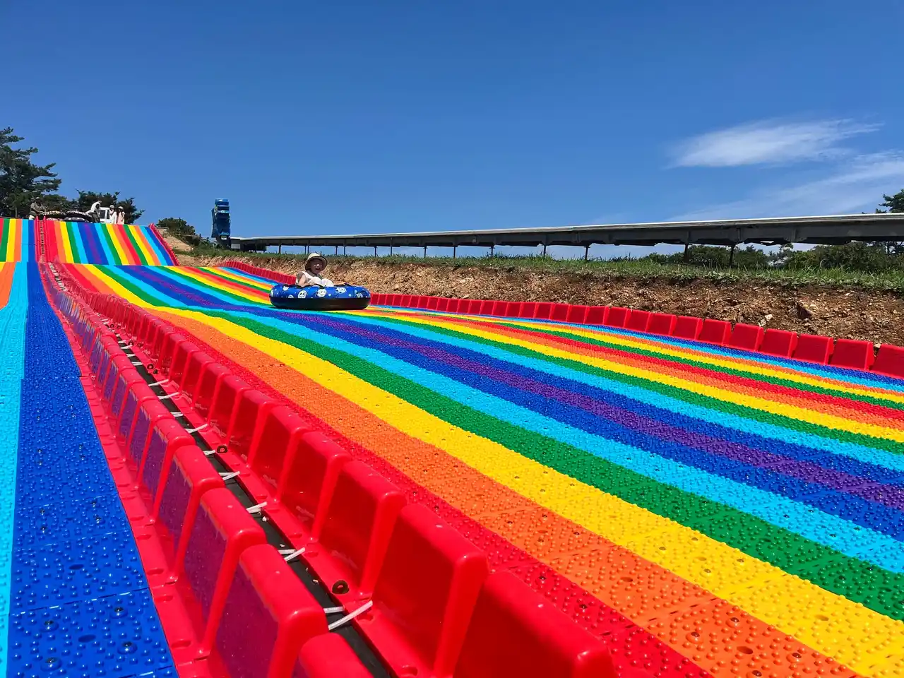 【大人気!虹色スライダーが全長100メートルへ進化!】 |