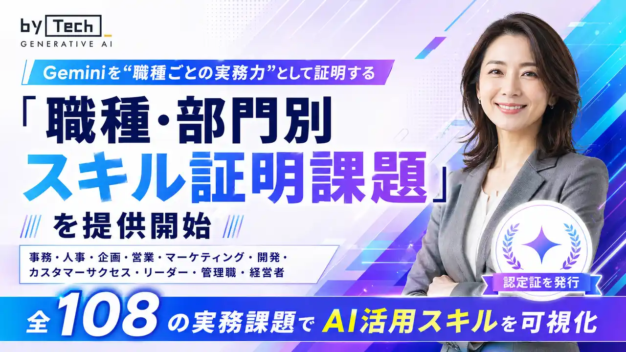 職種・部門別スキル証明課題は、「Geminiを触れるようになりたい」にとどまらず、「自分の仕事で成果につながる形で使いたい」「業務に落とし込み、周囲に説明できるレベルまで高めたい」という声をもとに生まれた実践型コンテンツです。 |