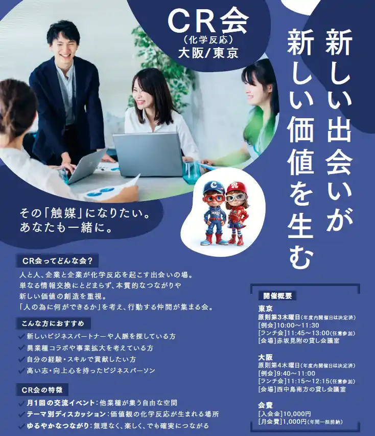 | 「CR会はこれまでも“化学反応が起きる場”を提供してきましたが、今回の連携により、その反応をより確実に成果へとつなげていきます。」 | |||