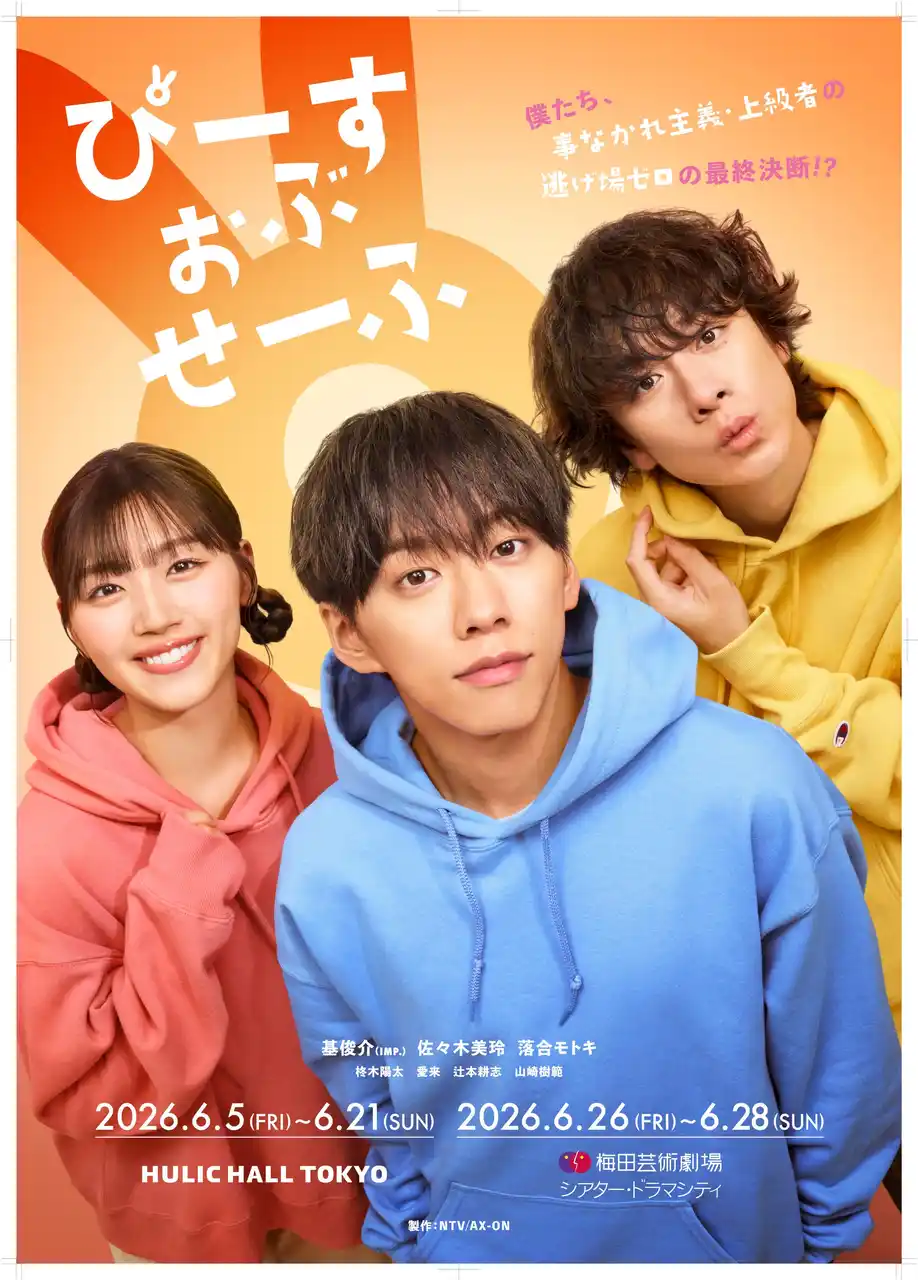 | 基俊介(IMP.)・佐々木美玲・落合モトキがトリプル主演を務める、ドラマ『ぴーすおぶせーふ』(日本テレビ/毎週火曜24時59分)のBlu-rayの発売が2026年8月26日(水)に決定。4月28日25:28より、予約受付が開始された。 | |||||||||