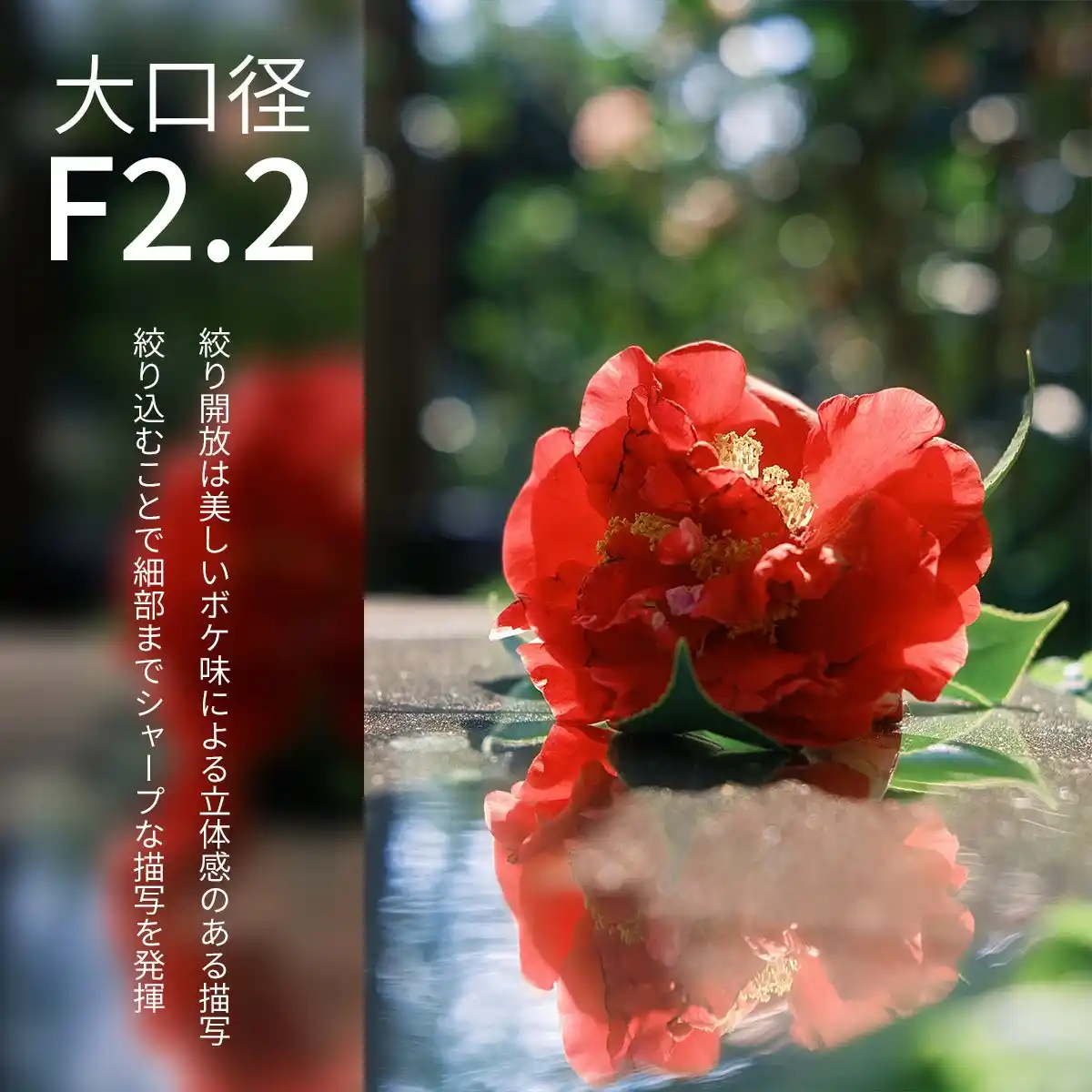 ・開放F2.2による自然なボケ表現 |