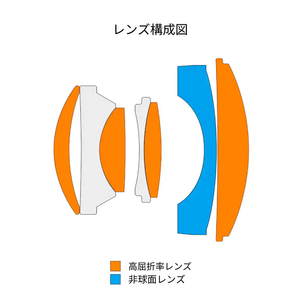 ・レンズ構成:5群7枚(高屈折率レンズ4枚、非球面レンズ1枚を含む) |