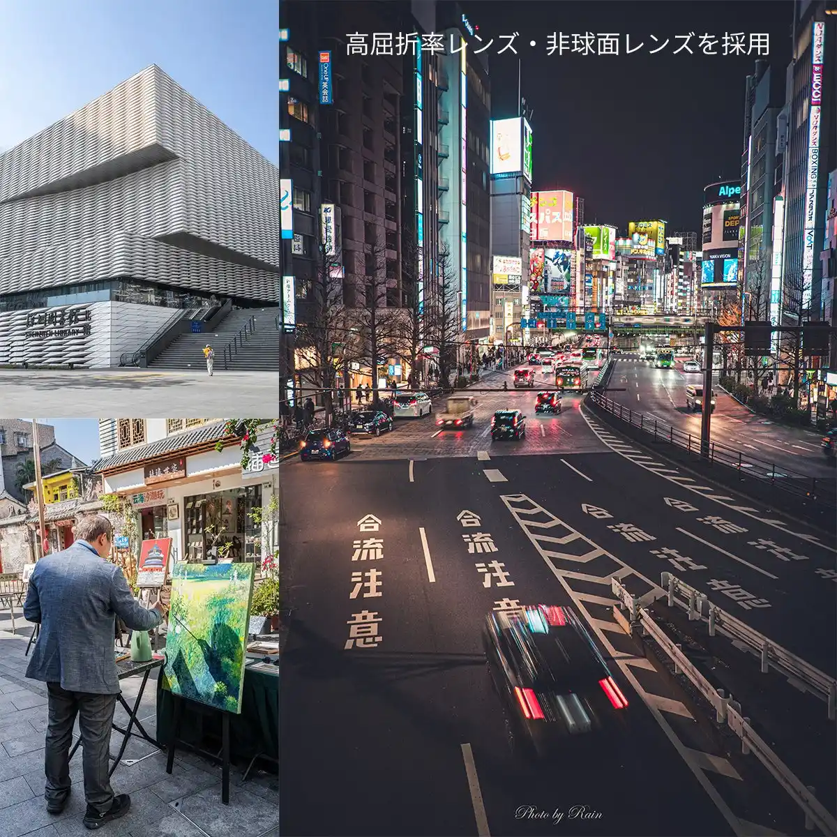 ・高屈折率レンズ・非球面レンズを採用した光学設計 |