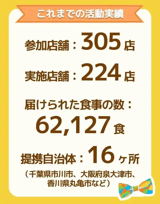 現在の参加飲食店は約300店舗。まずは全国1,000店舗への拡大、そして最終的にはすべての公立小学校区(18,545ヶ所)に展開することを目指しています。 |