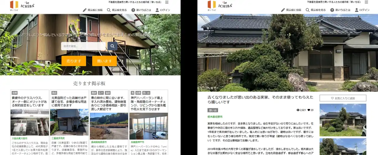 | 「家いちば」の最大の特徴は、売主自らが文章を書き、写真を投稿し、買主と直接交渉を行う「セルフセル(Self-sell)」スタイルにあります。 | |||