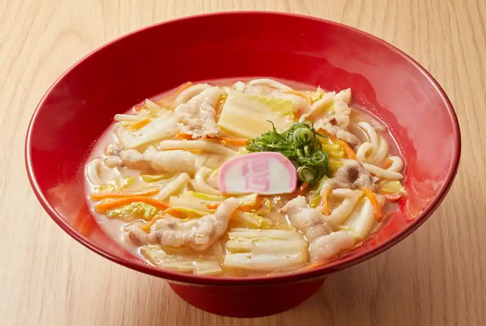 とんこつの旨みを凝縮しながらも、後味は意外なほどすっきり。コク深いスープがうどんによく絡み、シャキシャキ野菜の食感がアクセントに。 |