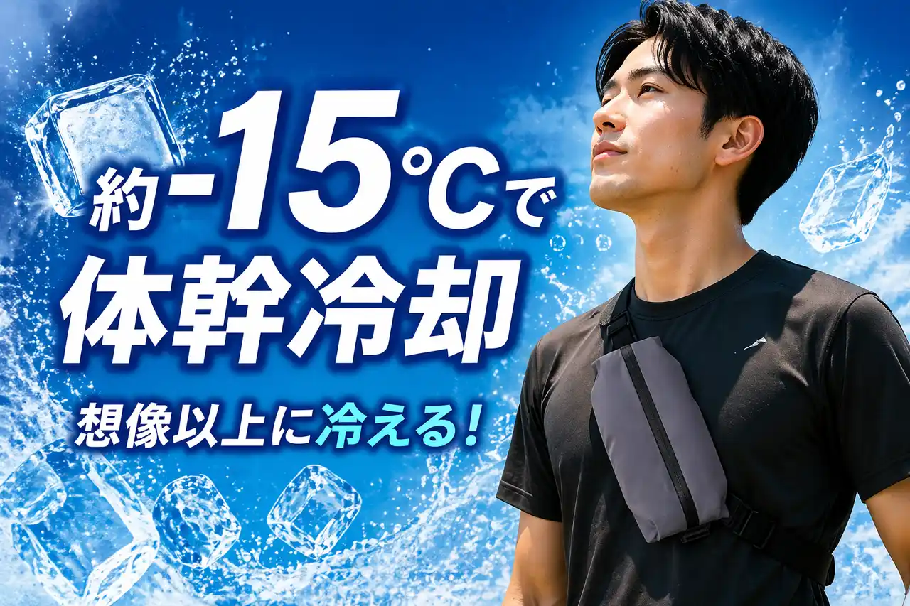 | 凍結ボトル(-15℃)の冷気で体幹を直接クールダウン。コンビニの氷を「最大9時間の強力冷感」に変える、独自の高断熱構造を採用。 |