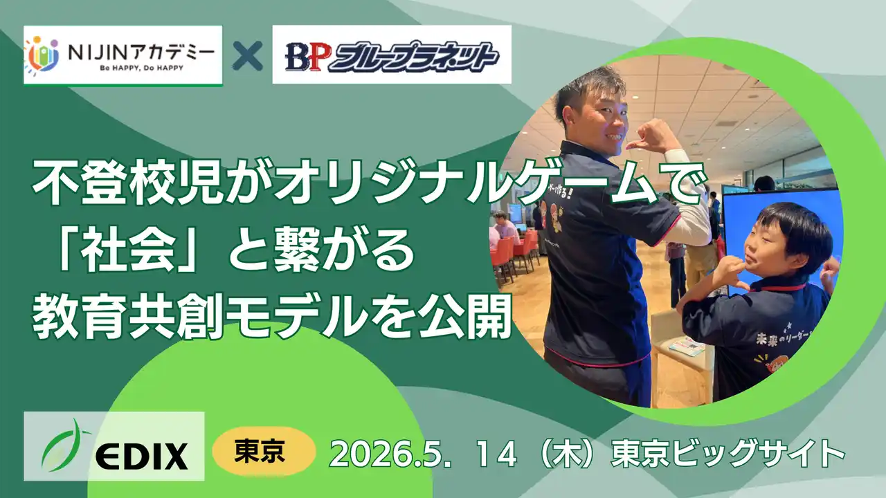 株式会社NIJIN(本社:東京都江東区、代表取締役:星野達郎)が運営する不登校オルタナティブスクール「NIJINアカデミー」は、2026年5月13日(水)~15日(金)の期間、東京ビッグサイトにて開催される「第17回EDIX(教育総合展)東京」に出展いたします。 |