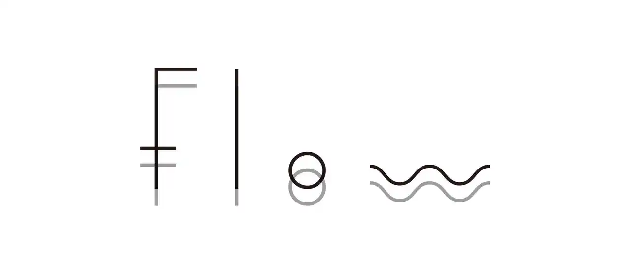 「流れ」を意味する「Flow」が2つ。グレーの部分は「見えない流れ」をあらわした遊び心です。このロゴをつくったのが、クリエイティブチーム「heso」です。 |