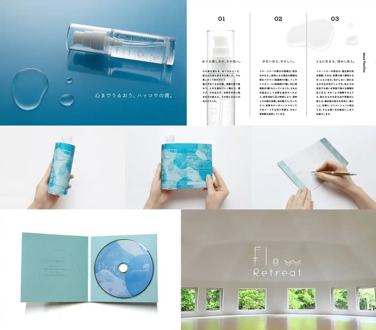 ──発酵スキンケアのパッケージデザイン、各種リーフレット、コンセプトアルバムのCDジャケット、リトリートのロゴに至るまで。FlowFlowの歩みの隣には、常にhesoの仕事がありました。 |