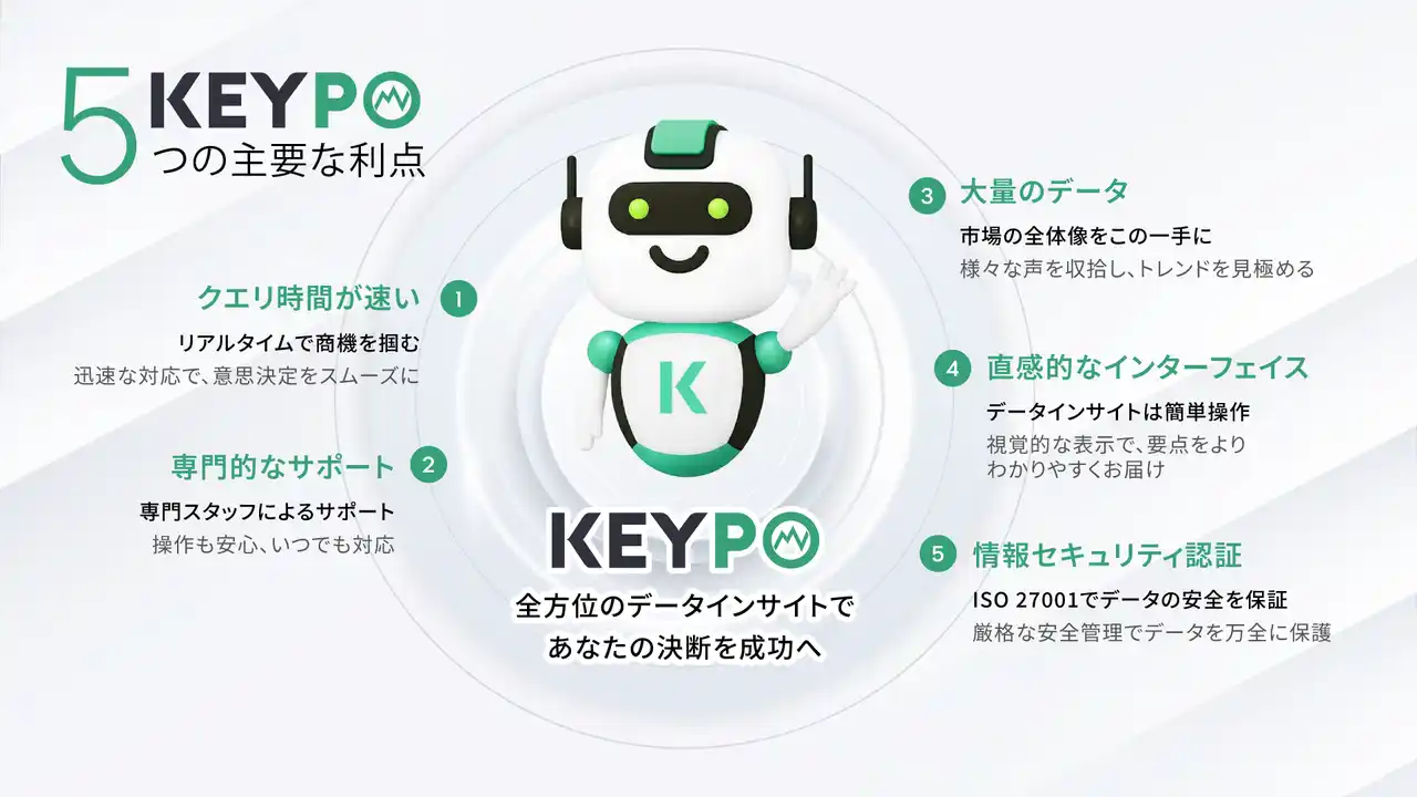 『KEYPOビッグデータ検索エンジン』日本語版は2026年2月に正式リリースされました。BIG DATAが10年以上にわたり培ってきたAIデータ分析のノウハウと、台湾で1,000社を超える大手企業を支援してきた実績を礎に、成熟した日本市場へと本格的に踏み出しました。 |