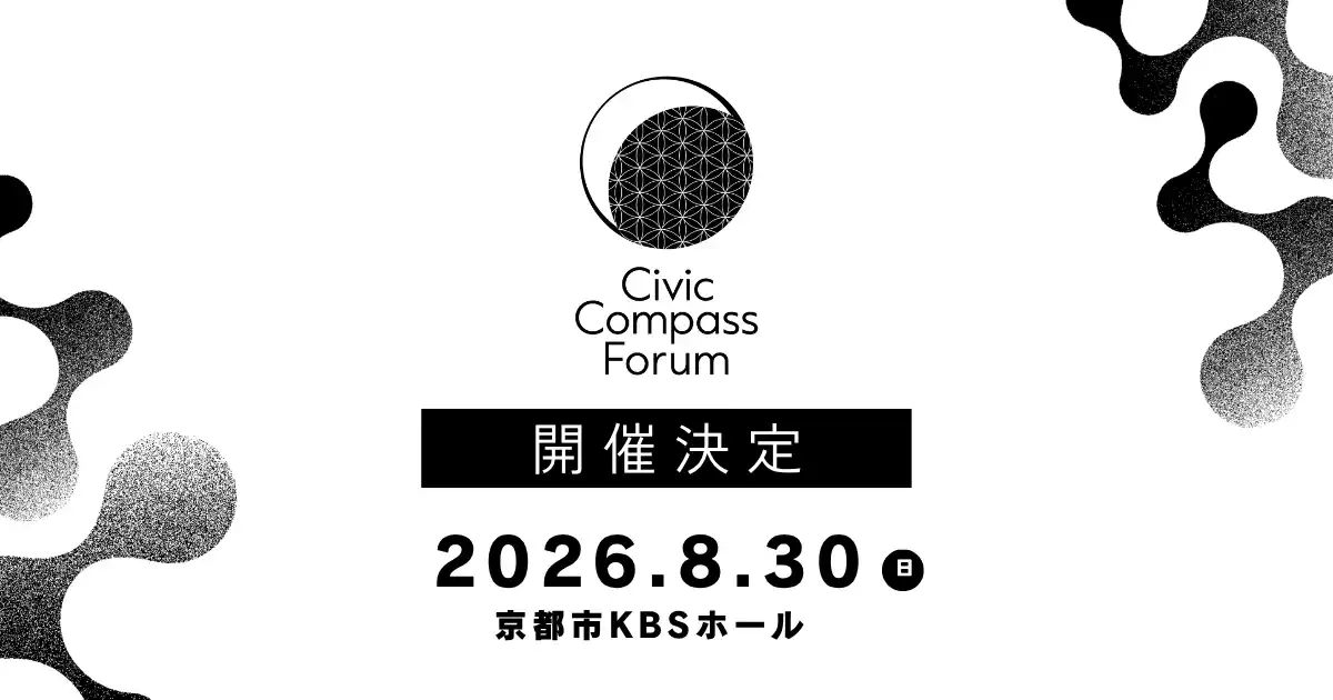 名称:Civic Compass Forum 2026 日時:2026年8月30日(日) 開場11:30/開演12:00 会場:KBSホール(京都府京都市上京区上長者町600-1) |