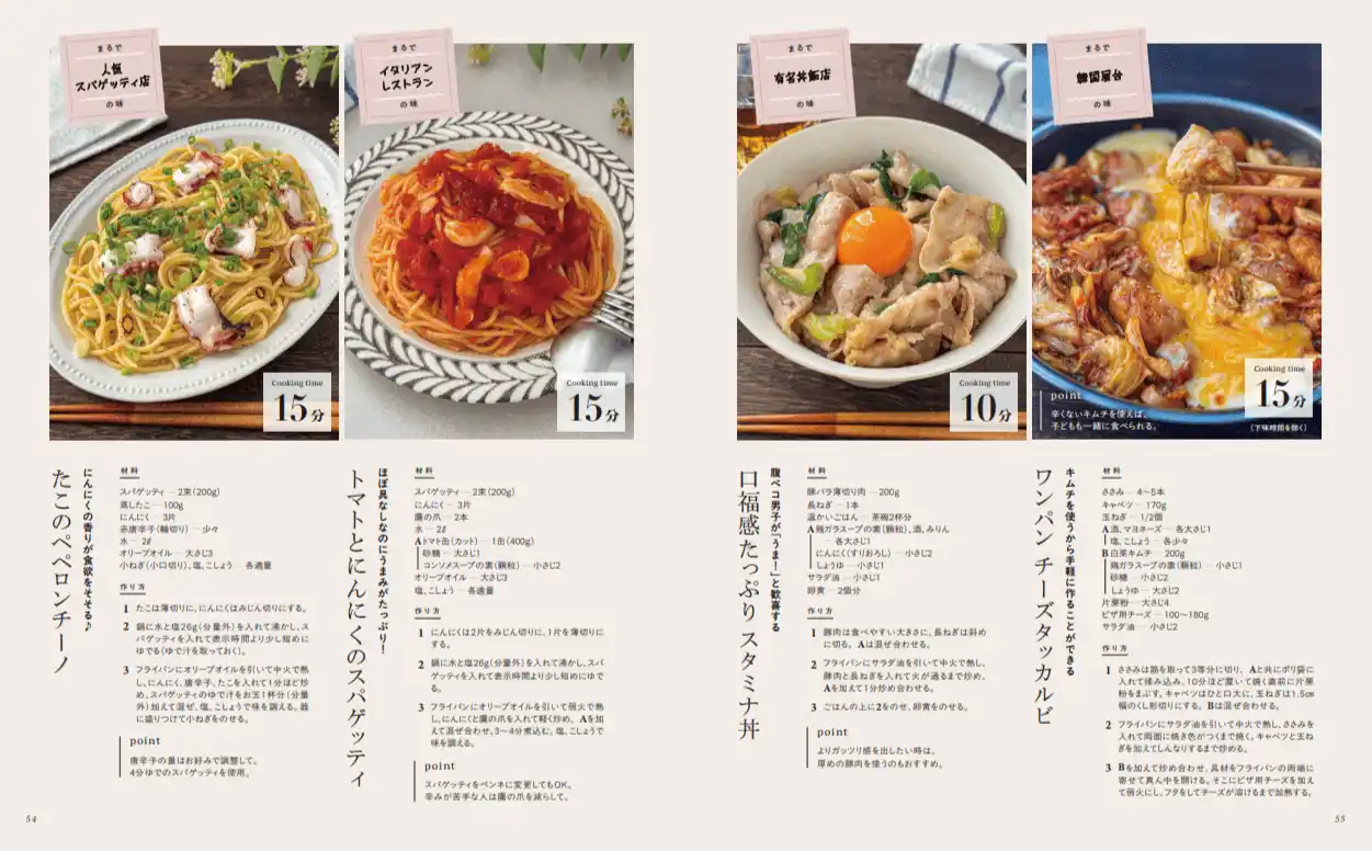 「あの有名店の味をおうちで再現したい!」という願いを叶える、ワクワクが詰まったパートです。チーズがとろける「ミラノ風ドリア」や、大人も子どもも大好きな「ハンバーグ」まで。特別な日の食卓もおもてなしも、この一冊があればもう迷う必要はありません。 |