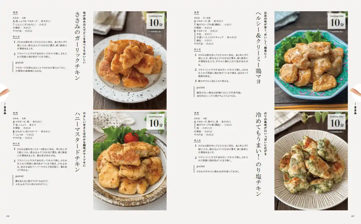 SNSでバズった話題の料理を厳選し、AKIHOさんの真骨頂が味わえるパートです。ご飯のおかわりが止まらなくなる「しっとりささみのチキン南蛮」や、辛くないのにうま味たっぷりの「塩麻婆豆腐」など、家族から「また作って!」とリクエストが止まらない主役級のおかずが勢揃いしています。 |