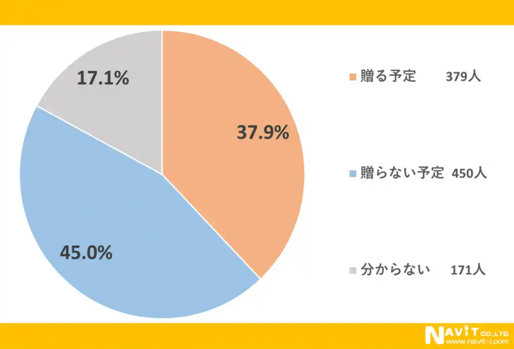 | 「今年の母の日、5月10日(日)にプレゼントを贈りますか?」という質問については、「贈る予定」が37.9%、「贈らない予定」が45.0%と、贈らない予定の人が上回る結果となりました。 | |||