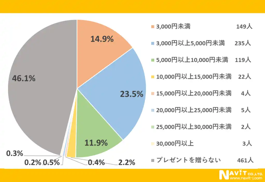 | 母の日に贈るプレゼントの予算は、「3,000円以上5,000円未満」が多数 | |||