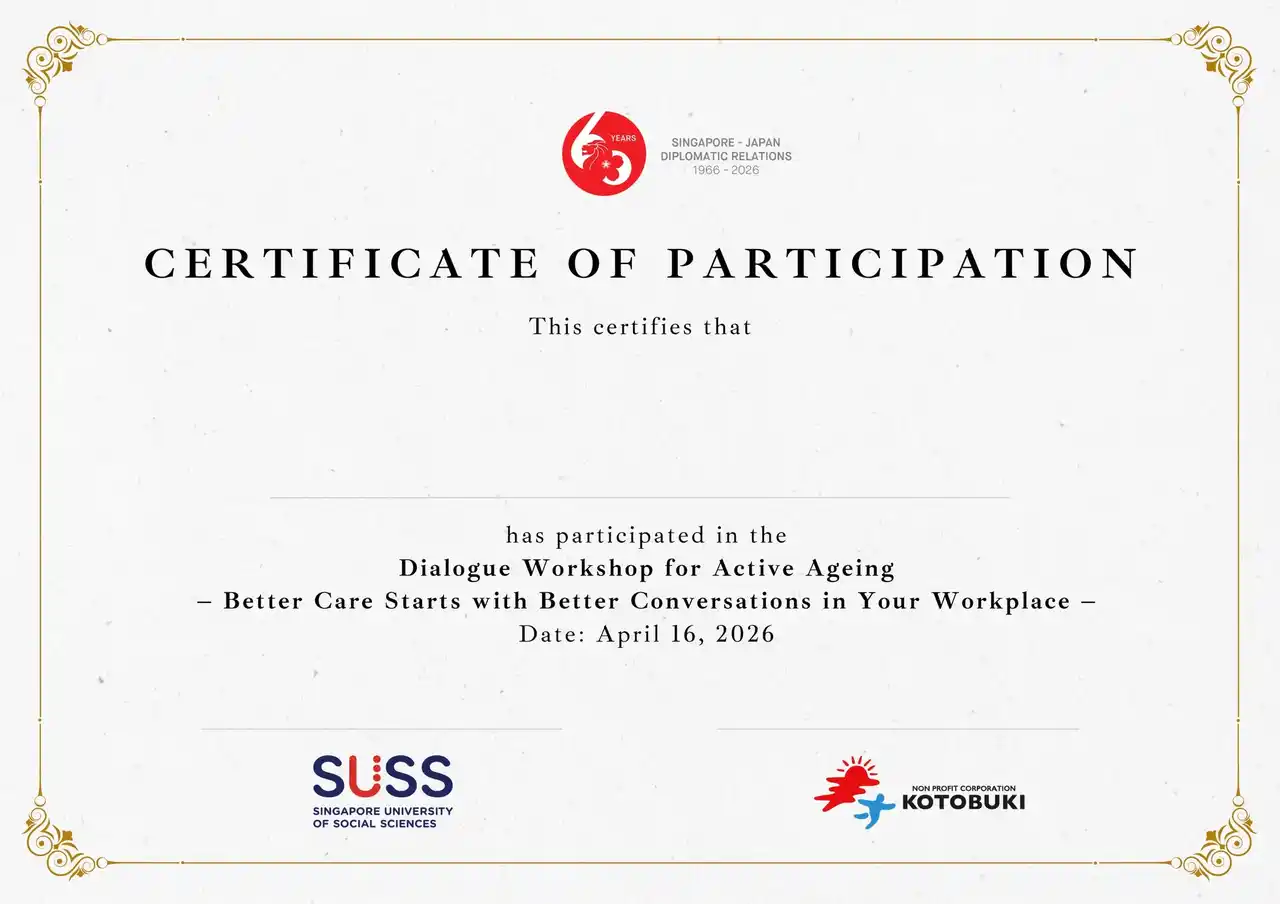 | シンガポール社会科学大学(SUSS)と共同で、ワークショップ「Dialogue Workshop for Active Ageing」を開催しました。 |