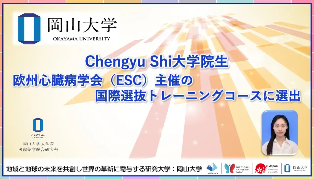 | 国立大学法人岡山大学(本部:岡山市北区、学長:那須保友)の大学院医歯薬学総合研究科博士課程大学院生の石成玉(Chengyu Shi)さん(指導教員:学術研究院医歯薬学域システム生理学分野・成瀬恵治教授、高橋賢准教授)が、欧州心臓病学会(European Society of Cardiology, ESC)が主催する国際的な選抜制トレーニングプログラム「ESC Fund Basic Cardiovascular Science Course 2026」の受講者として選出されました。 | ||||