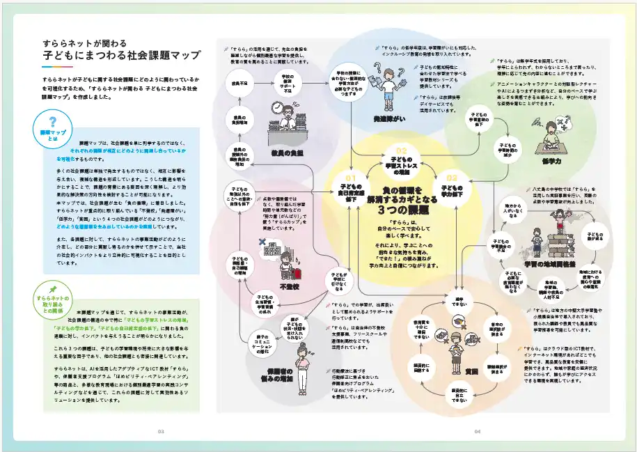 | ■「すららネットが関わる 子どもにまつわる社会課題マップ」 (P3‐P4) | ||||||
